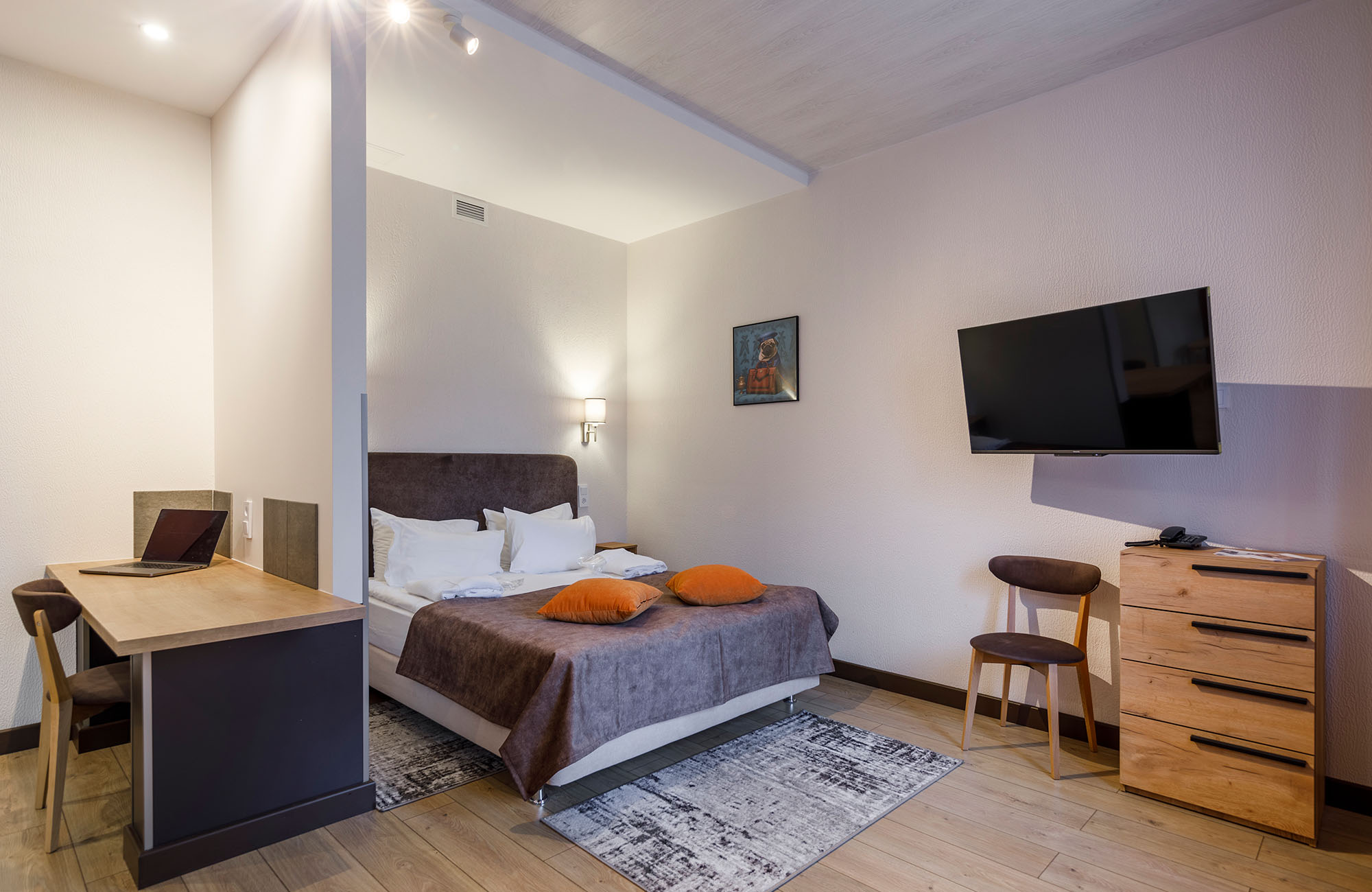 Отличный отдых. Просторный номер, чистота, комфорт, прекрасный шведский стол, ухоженная территория, парковка на территории отеля. Рекомендуем.к посещению. Лифт. Не курим. Тишина. Комфорт. Дружелюбность. Были третий раз.Приедем ещё.