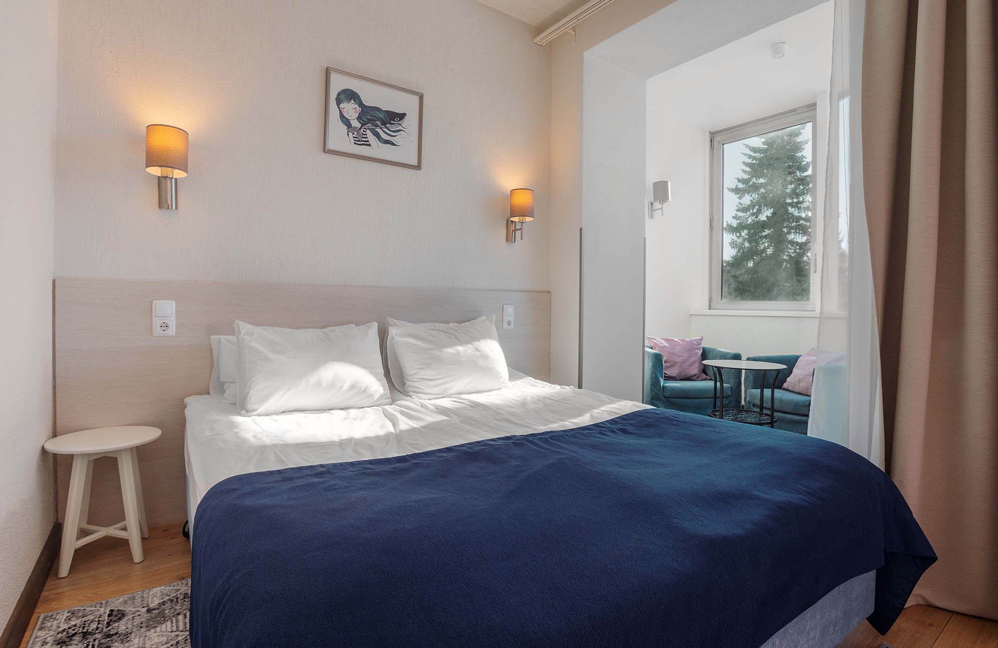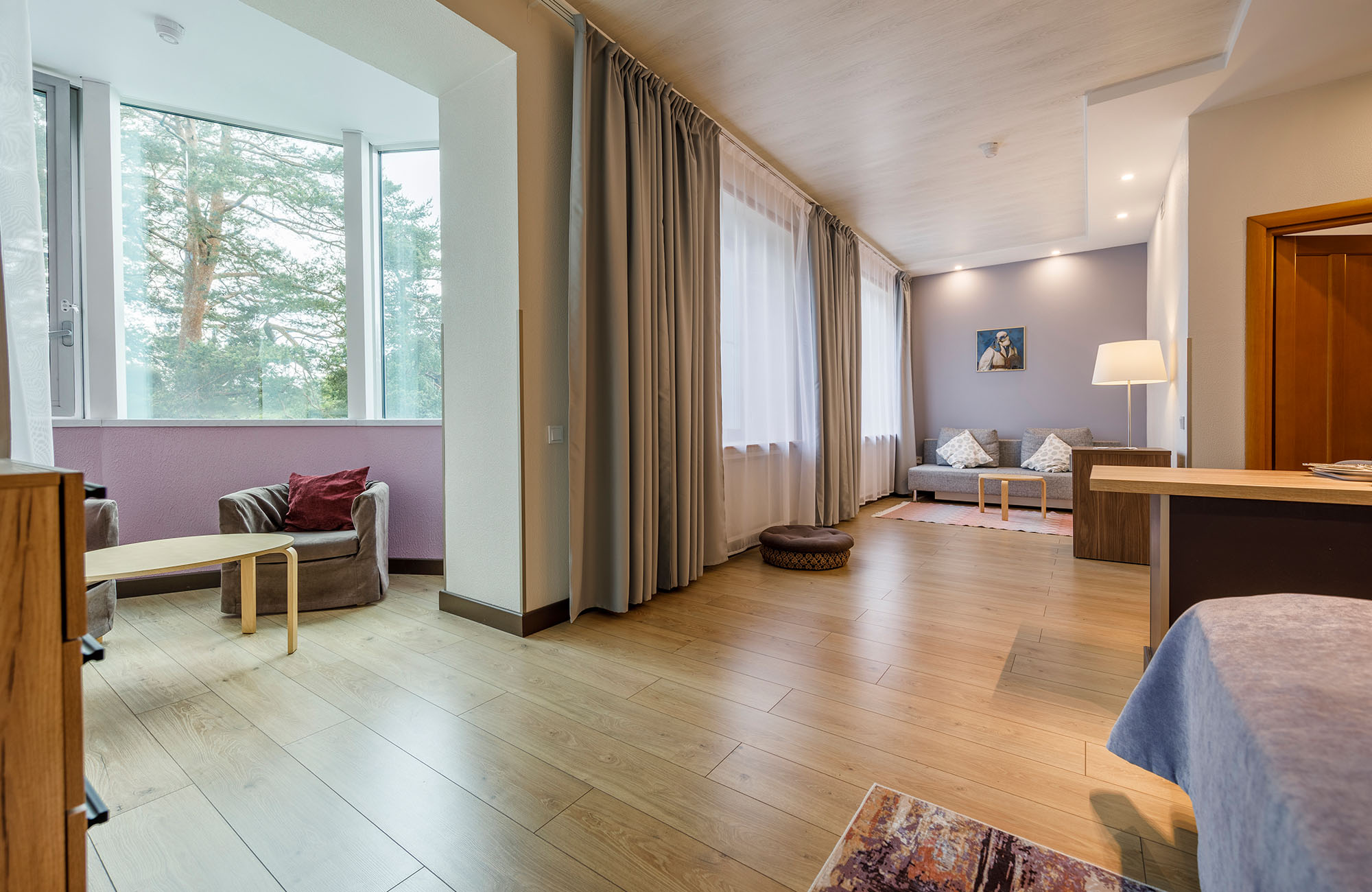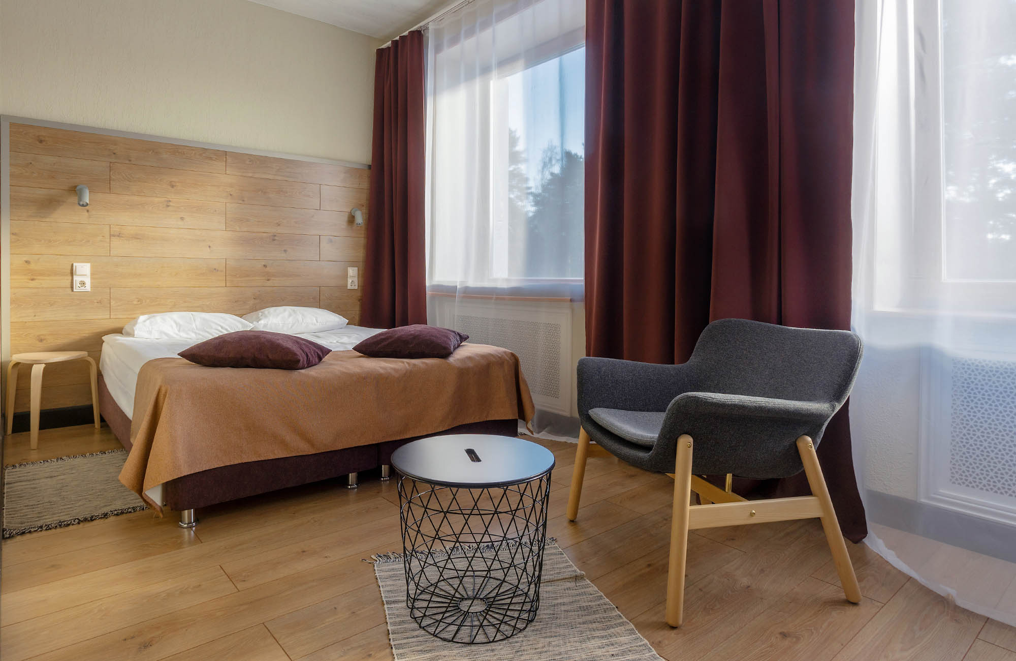 Отель не понравился.Были в номере повышенного класса Stun. Заезд поздний после 17ч. На завтрак "Шведский стол" через час после открытия уже разобрана еда. Булочку для ребенка не разрешили вынести. Хотя в номере есть кухня, чайник и микроволновка, т.е. из магазина я могла бы принести продукты и готовить. Вода в ванной вместо горячей едва теплая. Надо было сливать около 1 часа, чтобы помыться горячей водой. Интернет по факту не работает, хотя есть формально бесплатный wi-fi. Меьель разваливается, выпадают болты. Звукоизоляция плохая, слышно соседей отлично! В спа ничго особенного, чистенько и дорого. Заранее бронировали процедуры. Из-за пробок опоздали на 10 мин. Нам отказали в выбранных процедурах по причине опоздания. Прямо как на рейс в аэропорту! Вынуждены были выибрать из "коротких" процедур. Специалисты спа хорошо делают личную саморекламу! В оиеле нечем заняться в плохую погоду! В хорошую пойти погулять на Финский залив невозможно. Нет прохода через территорию прибрежных отелей. Надо было долго обходить или пролезать через дырки в чужих заборах. Итог: как и во всех отелях ЛО необоснованно дорого и негостеприимно. Лучше бронировать самостоятелтно квартиру.