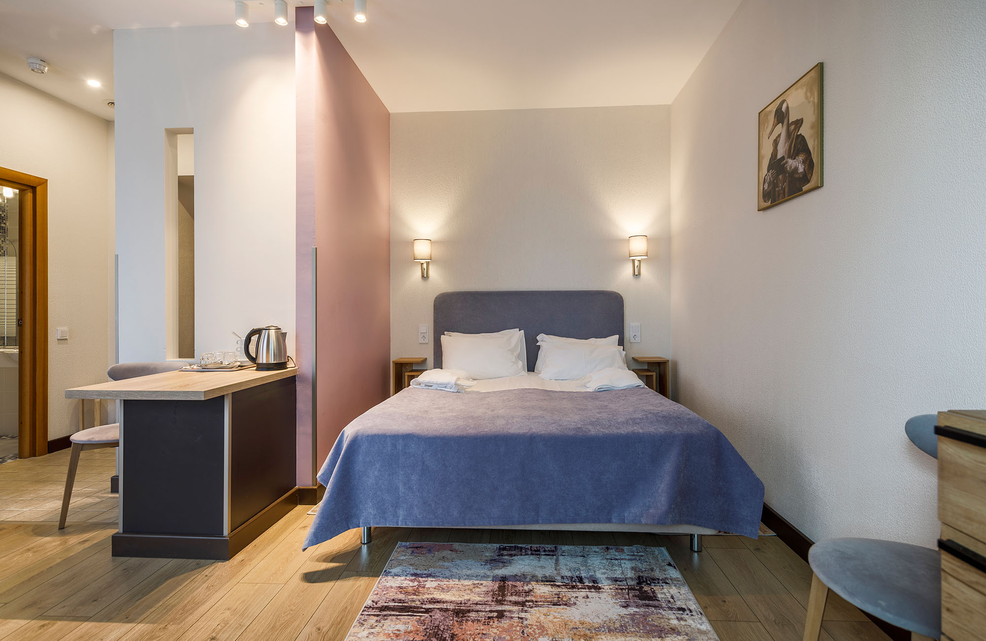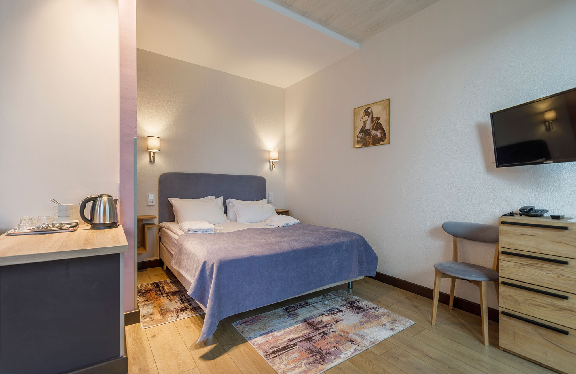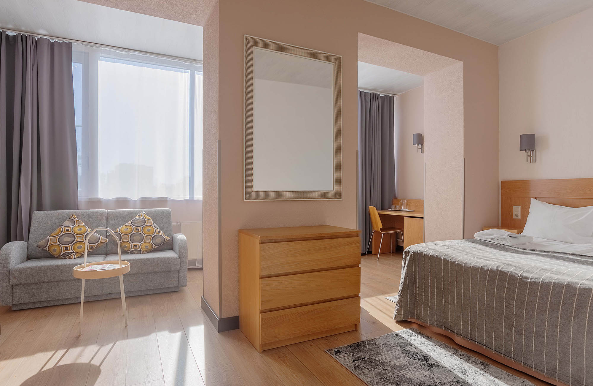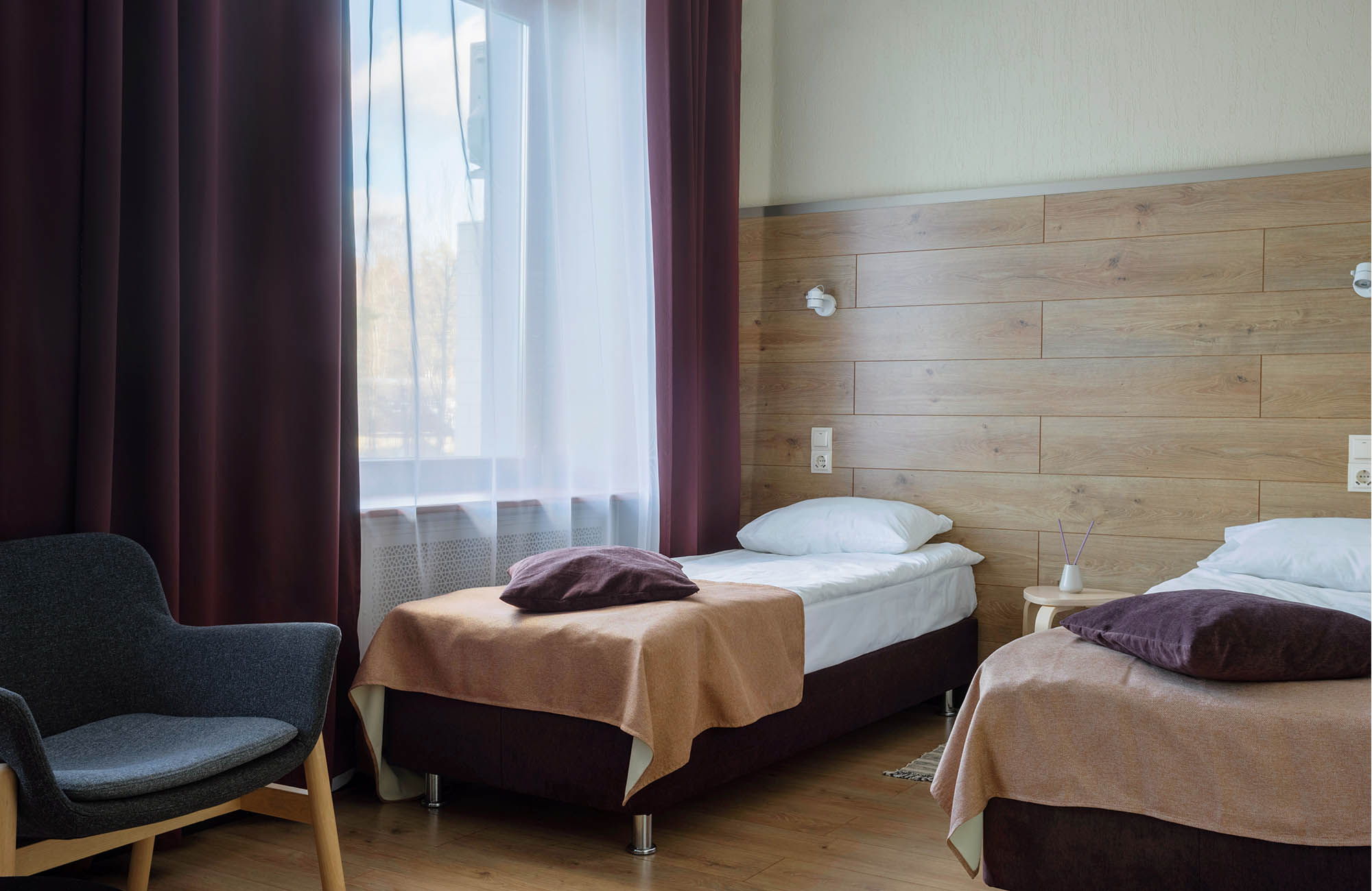 Отель не понравился.Были в номере повышенного класса Stun. Заезд поздний после 17ч. На завтрак "Шведский стол" через час после открытия уже разобрана еда. Булочку для ребенка не разрешили вынести. Хотя в номере есть кухня, чайник и микроволновка, т.е. из магазина я могла бы принести продукты и готовить. Вода в ванной вместо горячей едва теплая. Надо было сливать около 1 часа, чтобы помыться горячей водой. Интернет по факту не работает, хотя есть формально бесплатный wi-fi. Меьель разваливается, выпадают болты. Звукоизоляция плохая, слышно соседей отлично! В спа ничго особенного, чистенько и дорого. Заранее бронировали процедуры. Из-за пробок опоздали на 10 мин. Нам отказали в выбранных процедурах по причине опоздания. Прямо как на рейс в аэропорту! Вынуждены были выибрать из "коротких" процедур. Специалисты спа хорошо делают личную саморекламу! В оиеле нечем заняться в плохую погоду! В хорошую пойти погулять на Финский залив невозможно. Нет прохода через территорию прибрежных отелей. Надо было долго обходить или пролезать через дырки в чужих заборах. Итог: как и во всех отелях ЛО необоснованно дорого и негостеприимно. Лучше бронировать самостоятелтно квартиру.