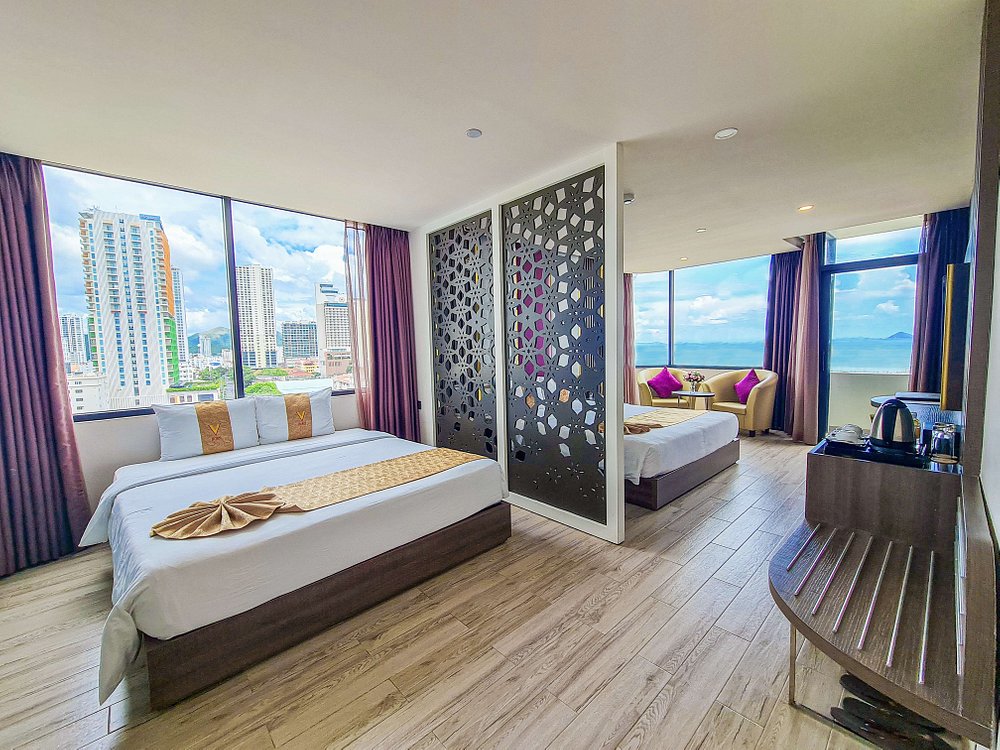 Однокомнатный номер укомплектован двуспальной/2 односпальными кроватями, кондиционером, беспроводным интернетом, мини-баром, сейфом, телевизором, телефоном, набором для приготовления чая и кофе. Ванная комната с душем, феном, тапочками, халатами, гостиничной косметикой. Вид на город и внутренний двор.