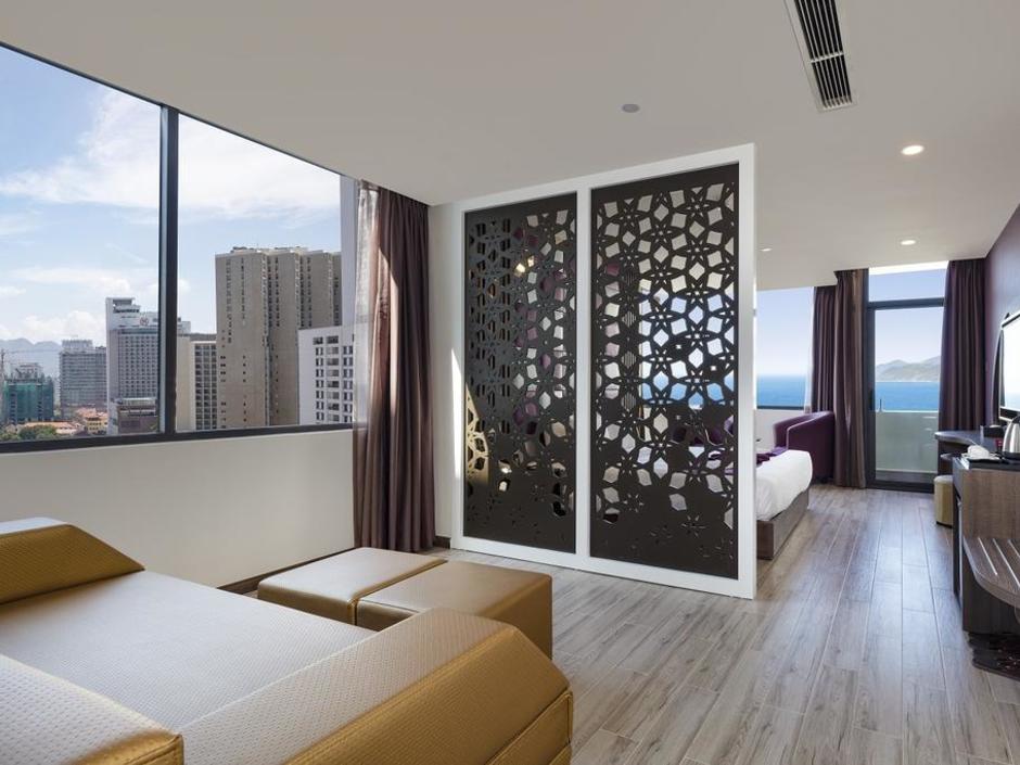 Комфортабельный номер с двуспальной/2 раздельными кроватями, ванной комнатой с душем, есть номера с балконом. В числе удобств - чайный набор, телефон, телевизор, сейф, мини-бар, кондиционер беспроводной интернет, фен. Предоставляются тапочки, халаты, гостиничная косметика. Из номера открывается вид на город/частично на море.
